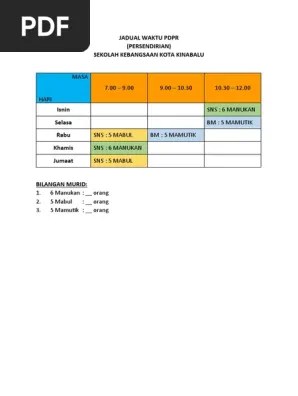 (persendirian) sekolah kebangsaan kota kinabalu. Perincian perancangan dan pelaksanaan jadual waktu pengajaran dan pembelajaran di rumah (pdpr) bagi. Jadual waktu pdpr sekolah rendah 2021 ini disediakan untuk memberi perincian perancangan dan pelaksanaan jadual waktu pdpr secara jelas. Diedit template jadual bertugas kelas boleh edit abad 21 learning note notes. Kurikulum standard prasekolah kebangsaan (kspk). Istimewanya template ini ianya sama saiz dengan ukuran di buku rekod.